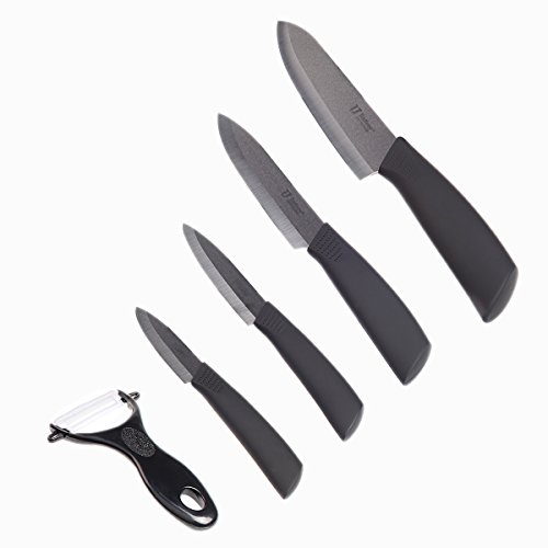 VDOMUS 4 Piece Ceramic Cutlery Kitchen Knives Set with Fruit Vegetables Peeler