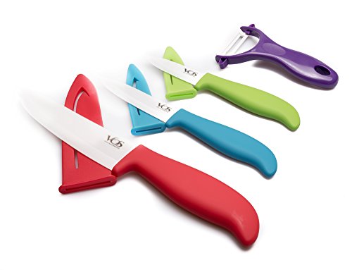 Vos Ceramic Kitchen Knives Set - 7 Pcs Chef Ceramic Knife Set - Elegant Box + Cookbook