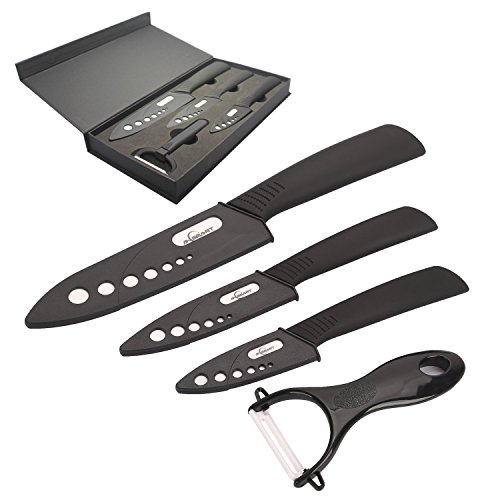 Aysmart® 7 Piece Ceramic Knife Set , 6" Chef Knife / 4" Vegetable Knife / 3" Fruit Knife + Parer , Kitchen Knives with Case (Knife Sheaths) - Add to Collection of Cutlery Kitchen Utensils - Use As Bread