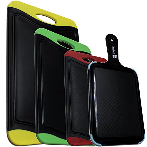 Chefcoo Cutting Board Set Stylish Color Plastic Non-Slip Kitchen Chopping Block, Juice Groove Lip for Meat & Vegetable Spills, Perfect Fit for Any Kitchen Knife, 4 Piece