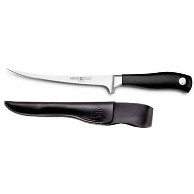 GRAND PRIX II 9" Fillet Knife w/ Leather Sheath, Black - Outdoor Collection