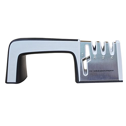 Henslow Knife Sharpener Is 4 In 1 Multi-Functional Knife Sharpening System-- 1 Scissor Sharpening System & Professional 3 Stage Sharpening System , 5 Seconds To Restore A Sharp Knife.