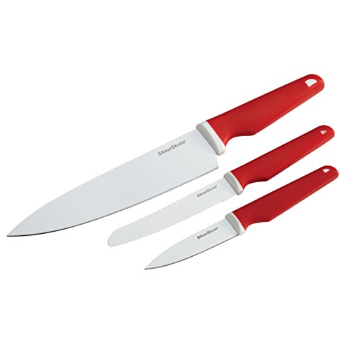 SilverStone Ceramic-Coated Steel Cutlery, Chef's Knife Set, 3-Piece, Chili Red Handles