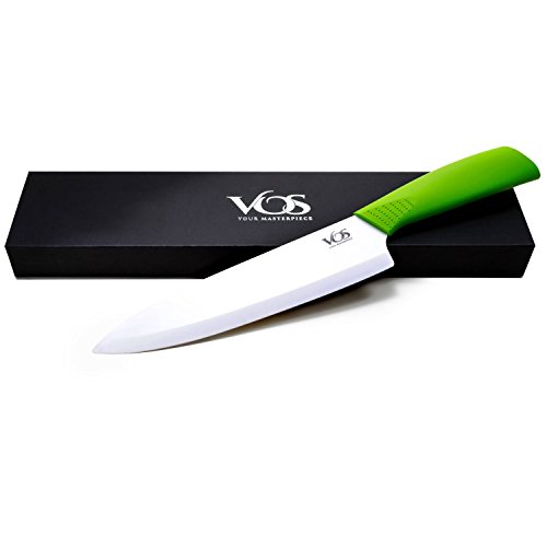 Vos Ceramic Chef Knife 8 Inch with Sheath Cover Box and Cookbook - Green