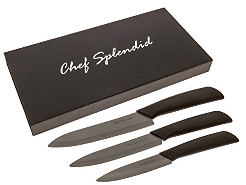 Premium Black Zirconia Ceramic Knife Set with Protective Sheaths. 3 Piece Set: 6" Chef's, 5" Utility and 4" Paring knife in a Magnetic Gift Box