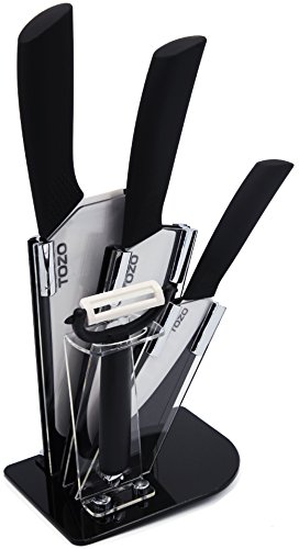 TOZO Ceramic Knife Set - Cutlery Set - Zirconia Ceramic Knife - Kitchen Ceramic Knives Include 6.5 inch Slicing Knife, 6-inch Multi-function Knife, 4 inch Fruit Knife, Fruits and Vegetables Plane, the Shelf (White)